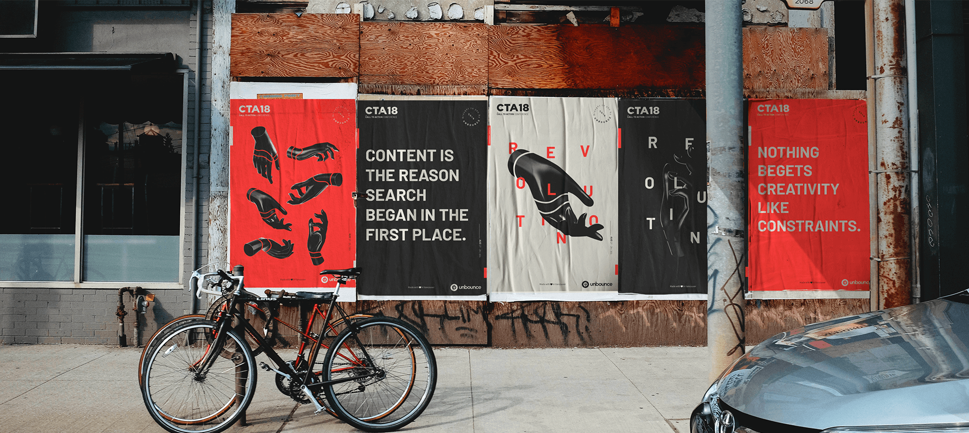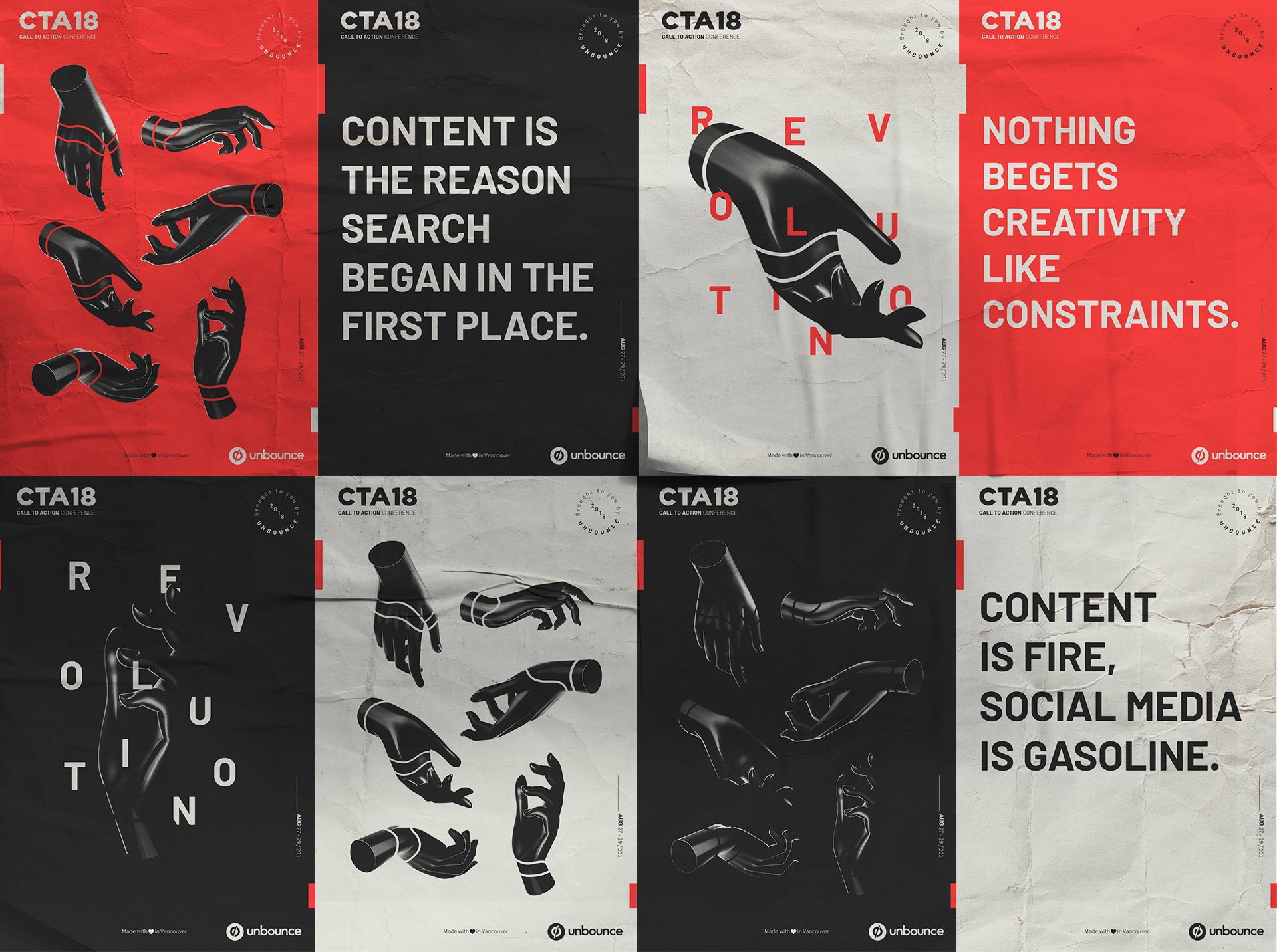 This year we created a strong theme around the “Marketing Revolution,” as the marketing landscape is on the cusp of a massive transformation. We were heavily inspired by the Russian Avant-Garde and its use of hands as a symbol to represent empowerment, unity, and action—some of the values which inspire and guide the intention behind both Unbounce and CTA18.